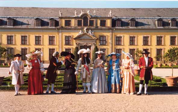 Hofgesellschaft König Georg I. vor der Galerie in Hannover Herrenhausen